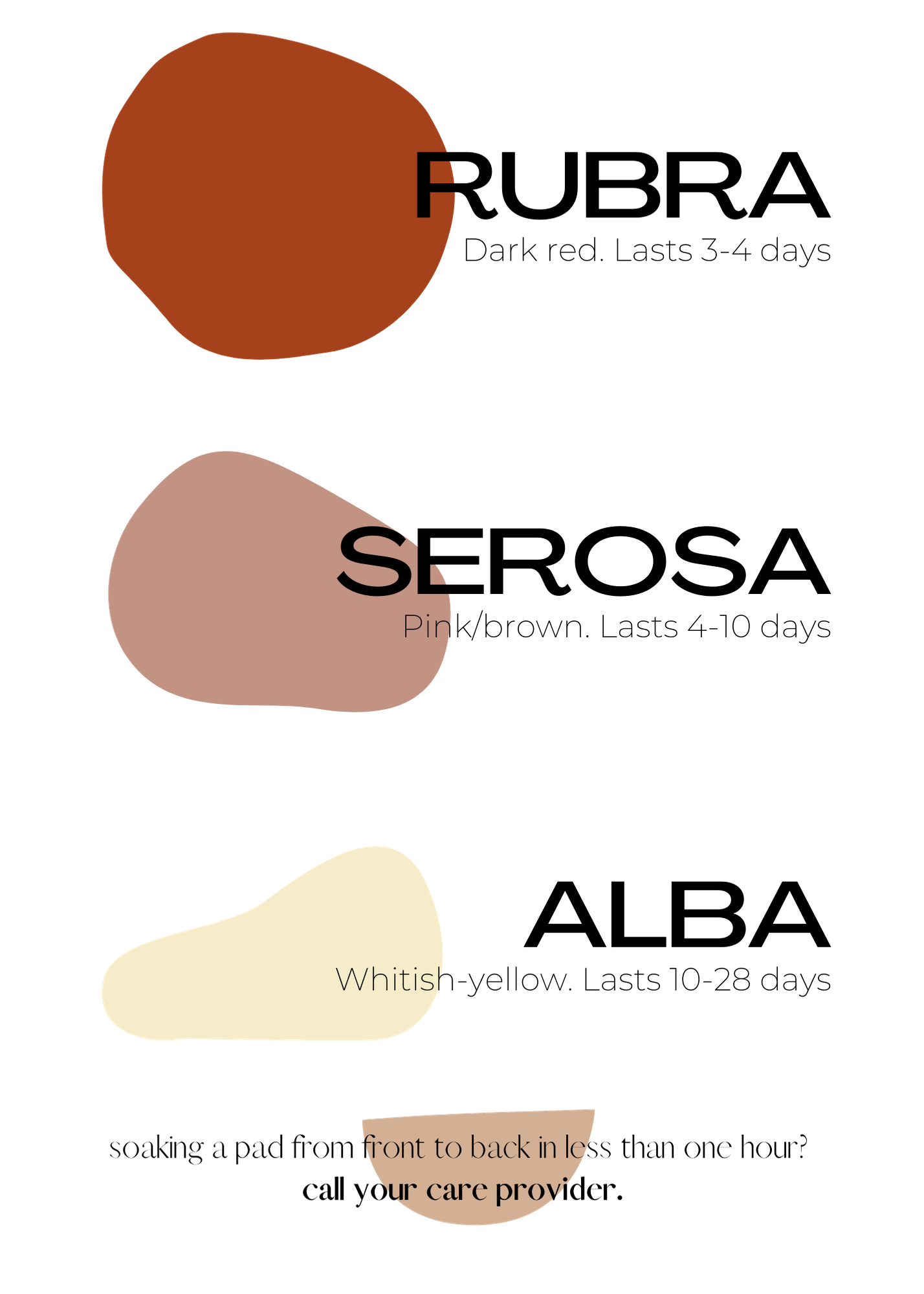 But what is not commonly talked about is the four to six weeks of postpartum bleeding and discharge that occurs after birth, otherwise known as lochia. You may or may not feel 100 percent back to normal, but six weeks is generally considered a postpartum milestone for recovery. Around two to four days after you've given birth, the lochia may be more watery and pinkish. Six weeks postpartum your physical recovery: