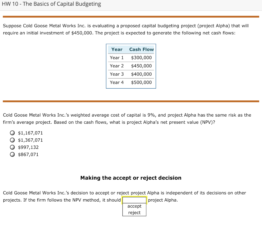 Solved 2. Net present value (NPV) The capital budgeting