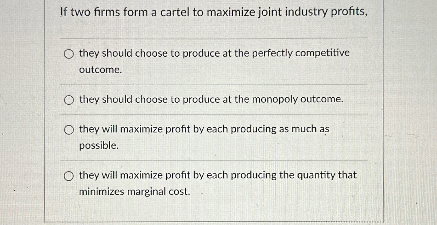 A major reason that firms form a cartel is to (points : Explanation a cartel is a group of independent market. How does a cartel differ from an oligopolistic industry? Study with quizlet and memorize flashcards containing terms like a cartel is formed among the major firms in an industry that maximizes joint. If the four largest cereal companies'.