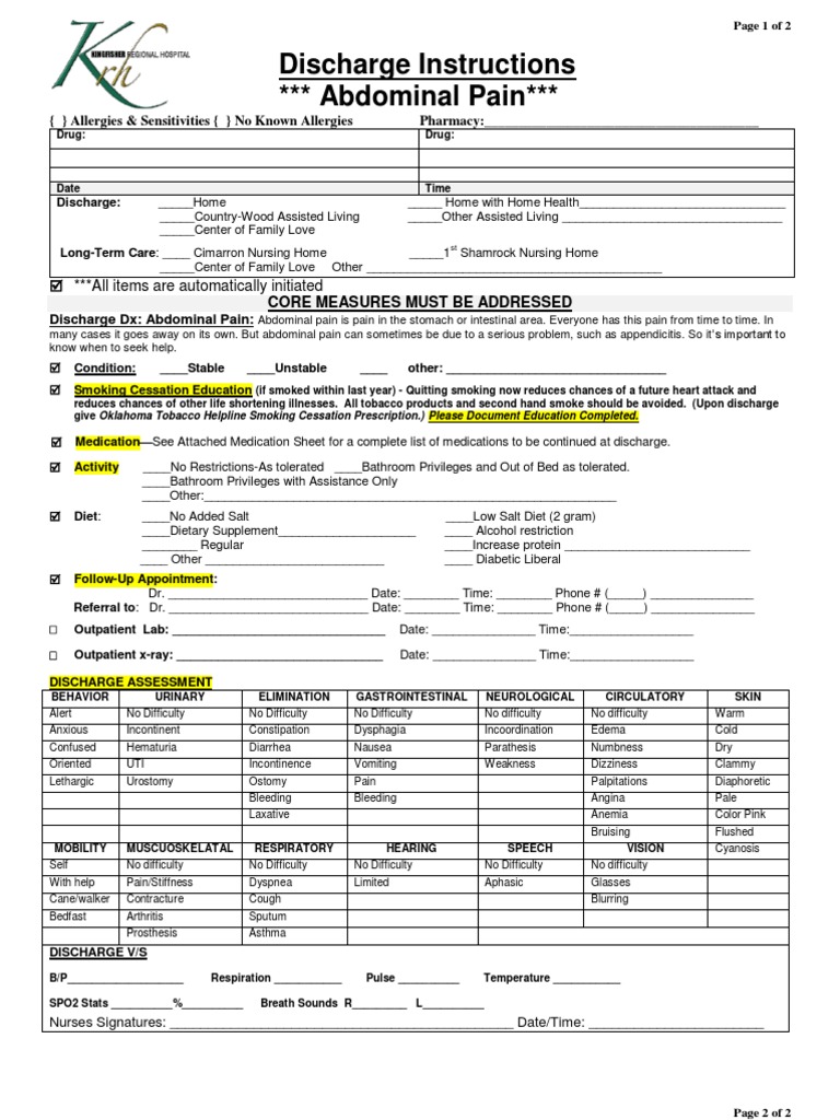 Abdominal Pain Discharge PDF Nausea Medical Specialties