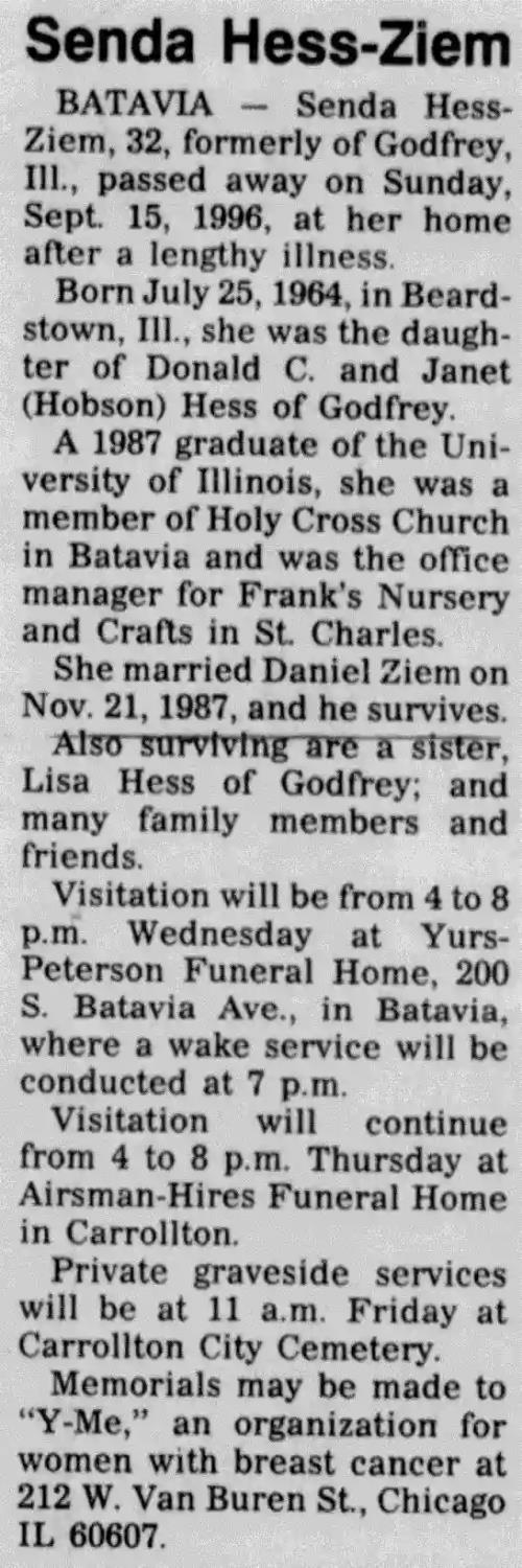 Daughter's funny, honest obit in Alton, Illinois newspaper going viral