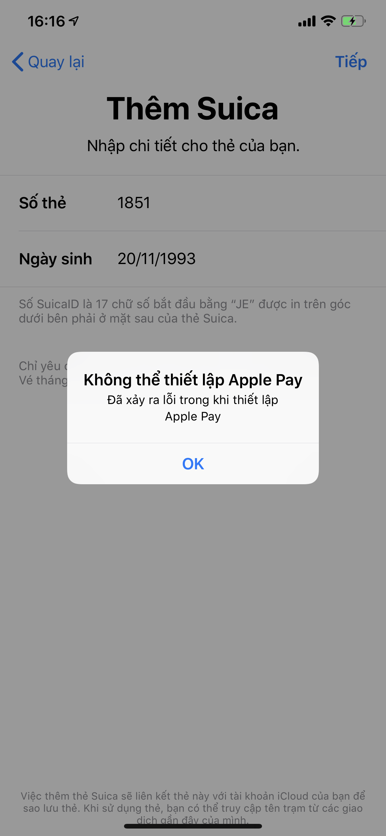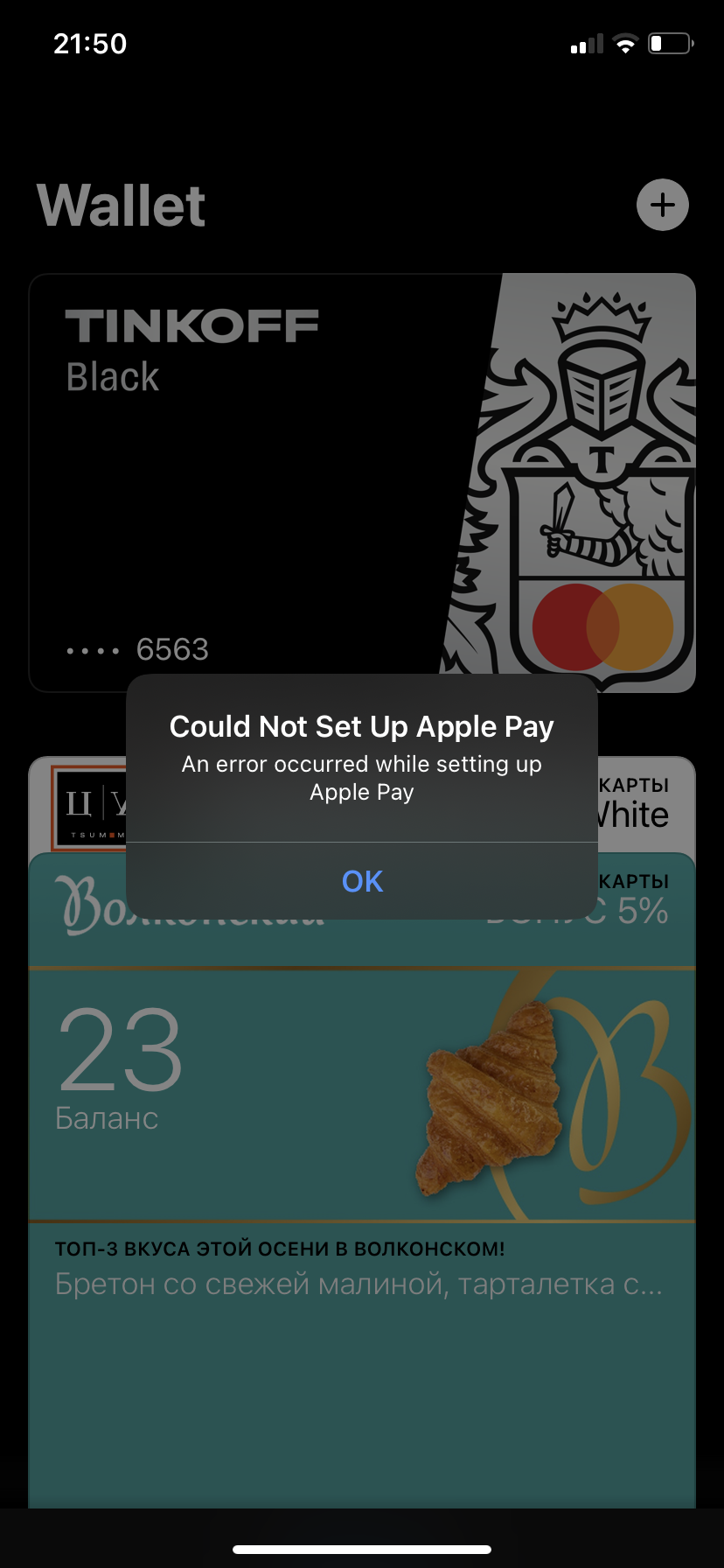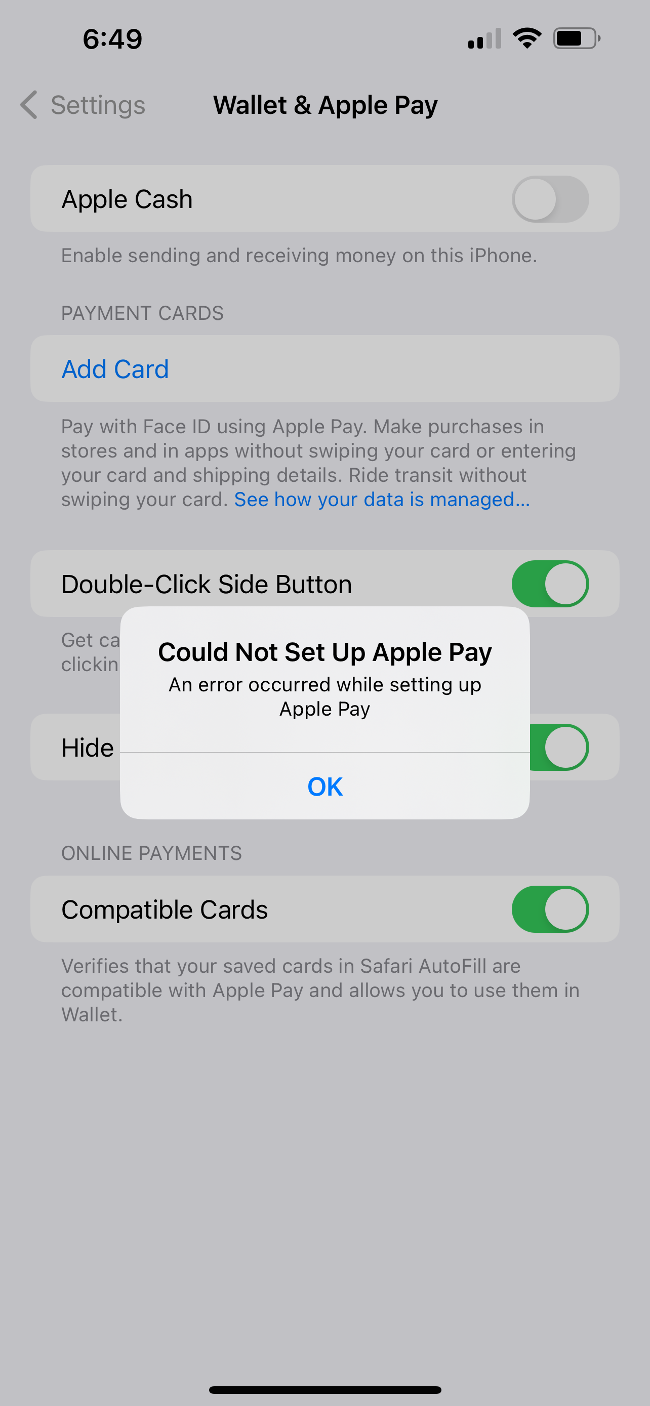 Could Not Set Up Apple Pay, An error occurred while setting up Apple