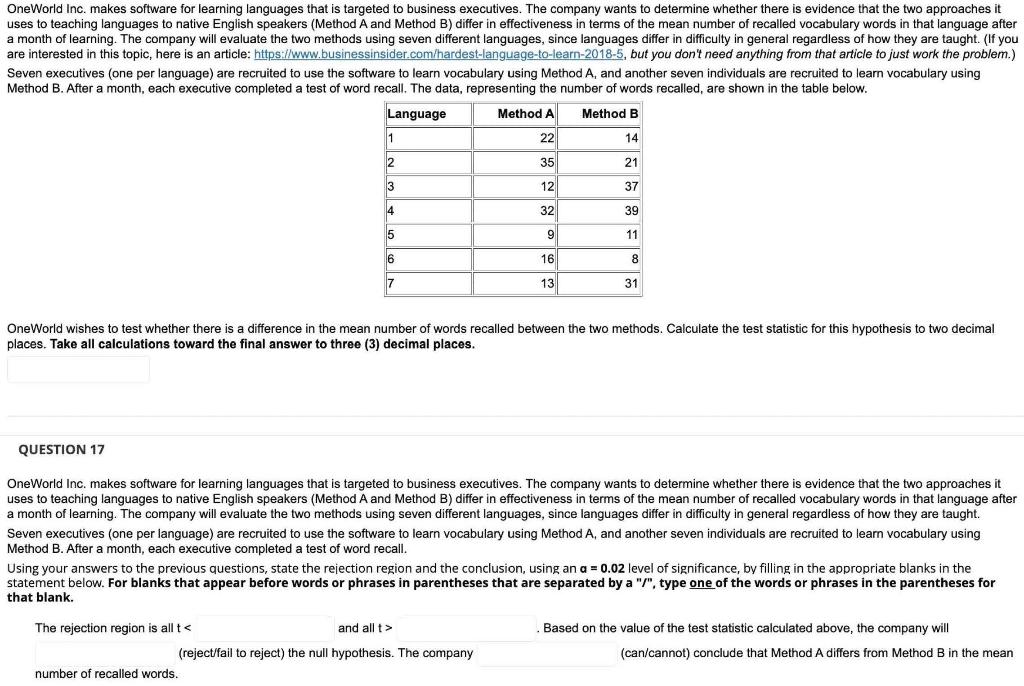 Solved OneWorld Inc. makes software for learning languages