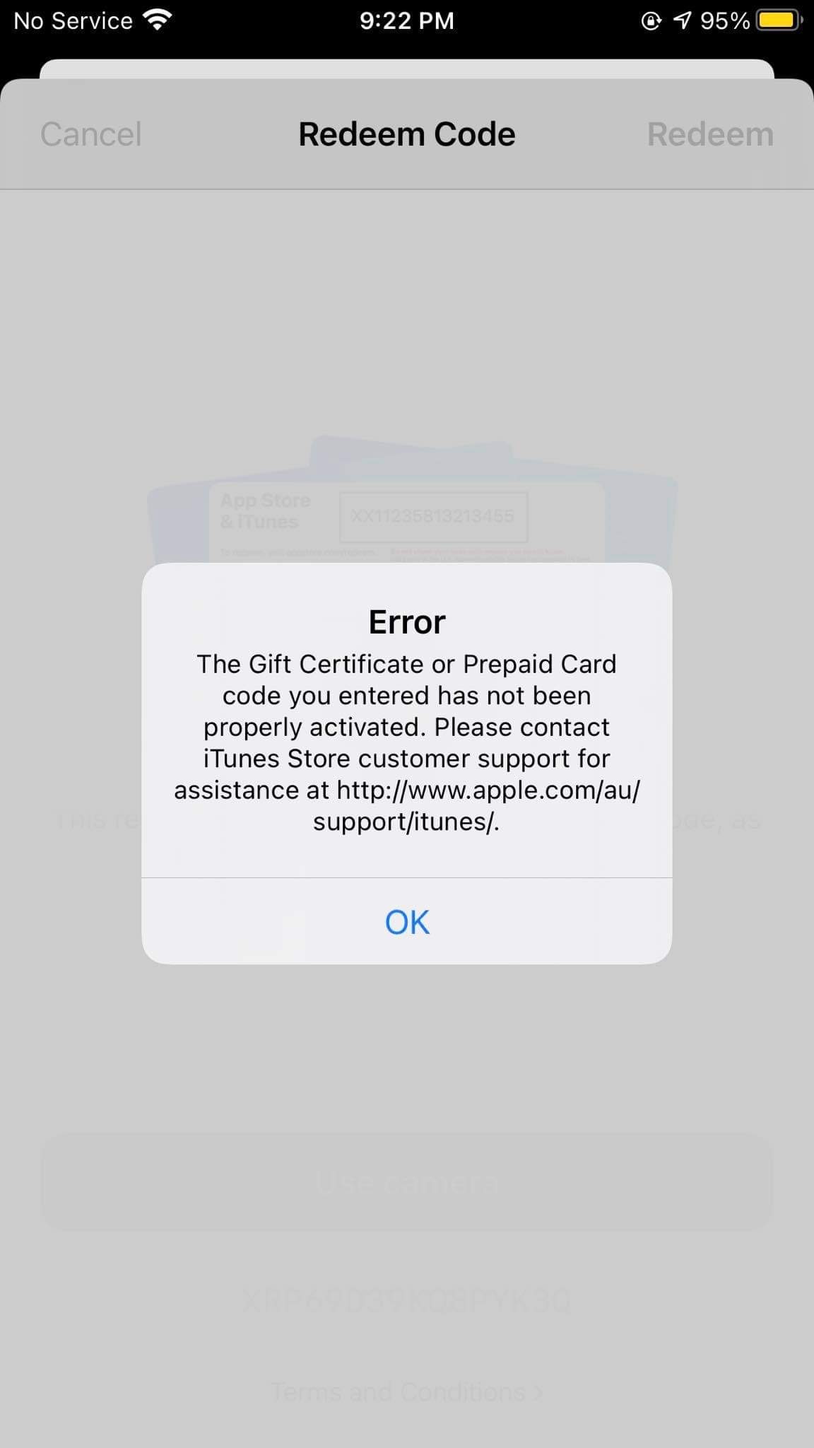 I can't redeem a gift card Apple Community