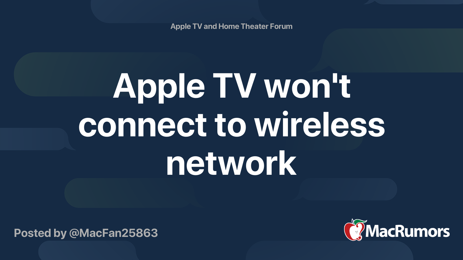 Apple TV won't connect to wireless network MacRumors Forums