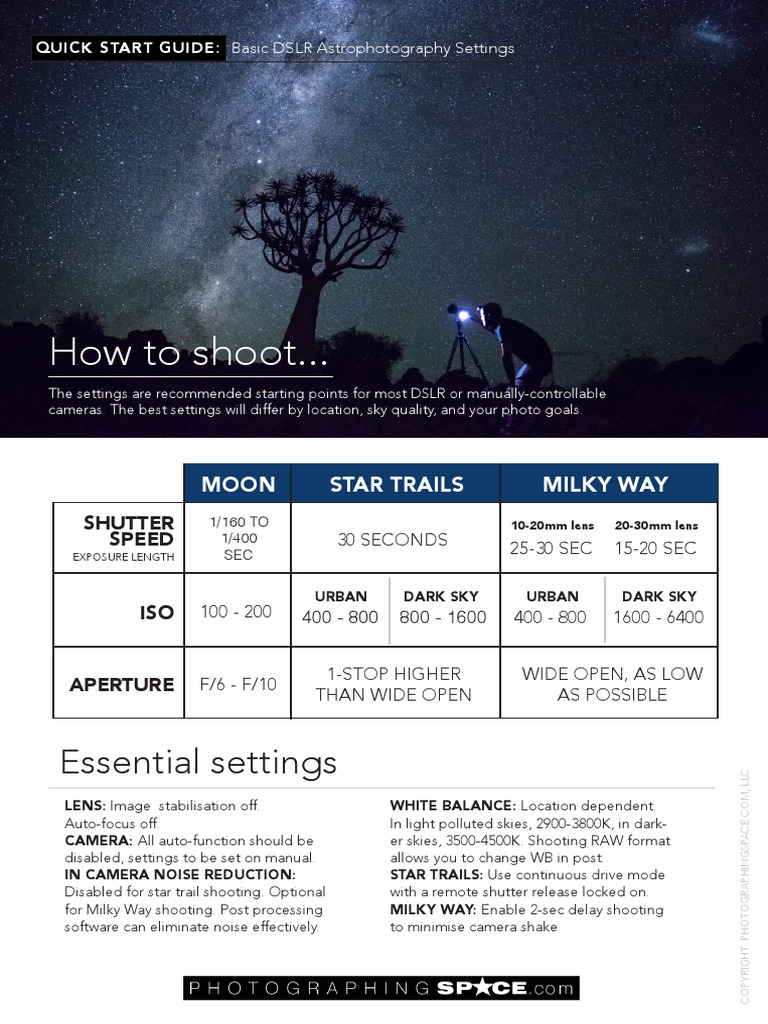 SpaceDSLR Astrophotography CHEAT SHEET PDF