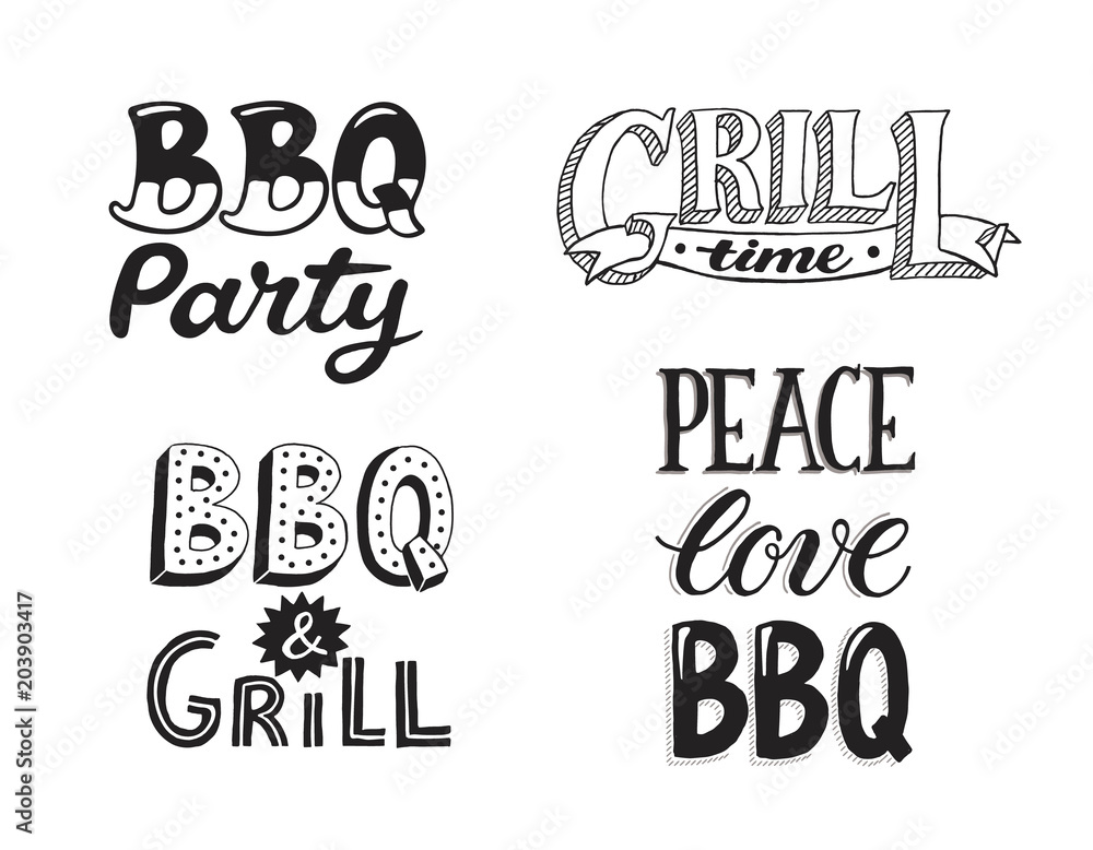 Hand drawn lettering about BBQ and grill isolated on white background