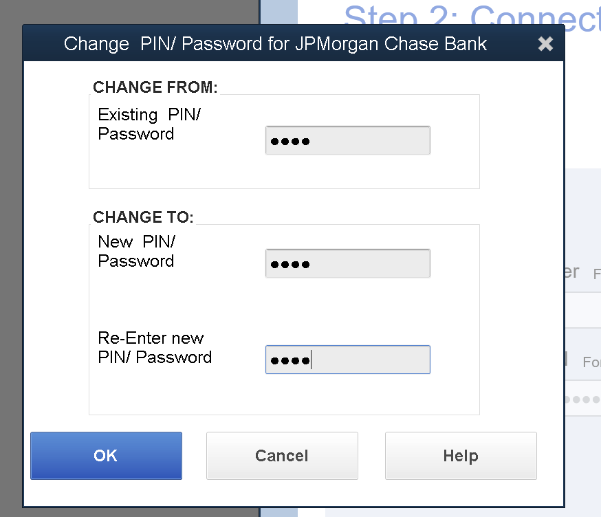 Connect to Chase bank feed 4 digit password?