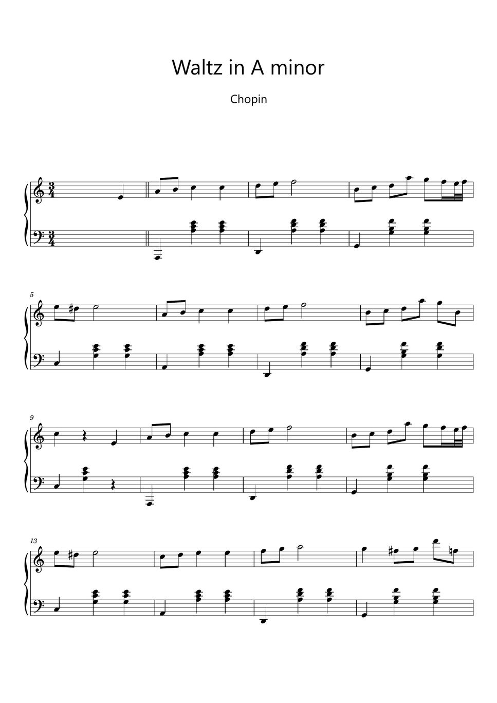 Chopin Waltz In A Minor Sheet Music - Download chopin waltz in a minor, b.