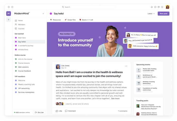 Circle lets you organize your community in spaces — similar to slack — but once you’re in a space, it’s really easy to follow the topic and tone for.