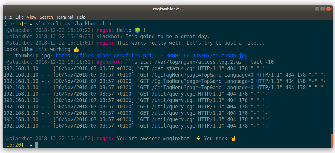 Commands are executed in standalone mode and responses. Command line interface (cli) to interact with the slack, the popular chat service.