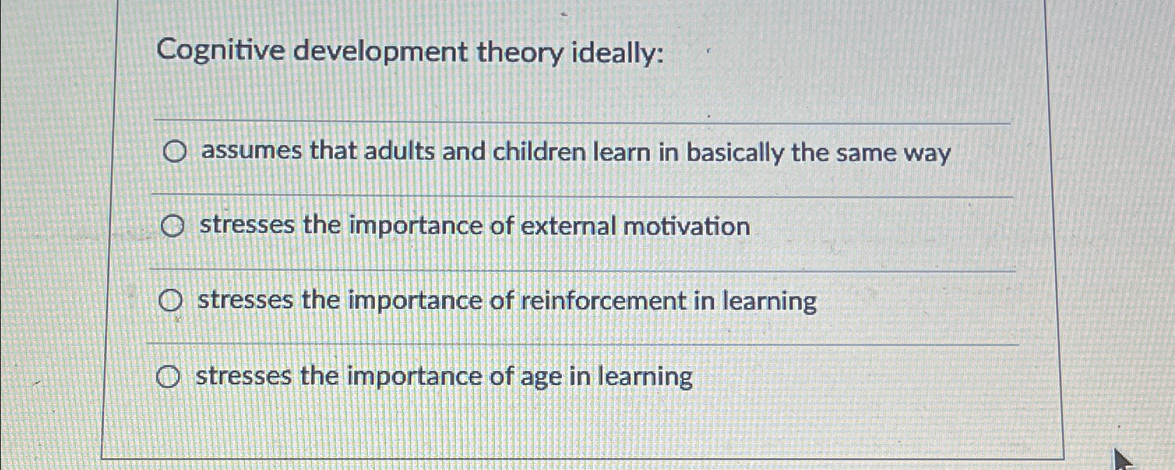 Jean piaget's stages of cognitive development outlines four stages (sensorimotor, preoperational, concrete operational, formal. Development theories give us deep insights into human growth and progress. Cognitive development goes beyond childhood into adolescence, a process we explain here, plus a few theories and.