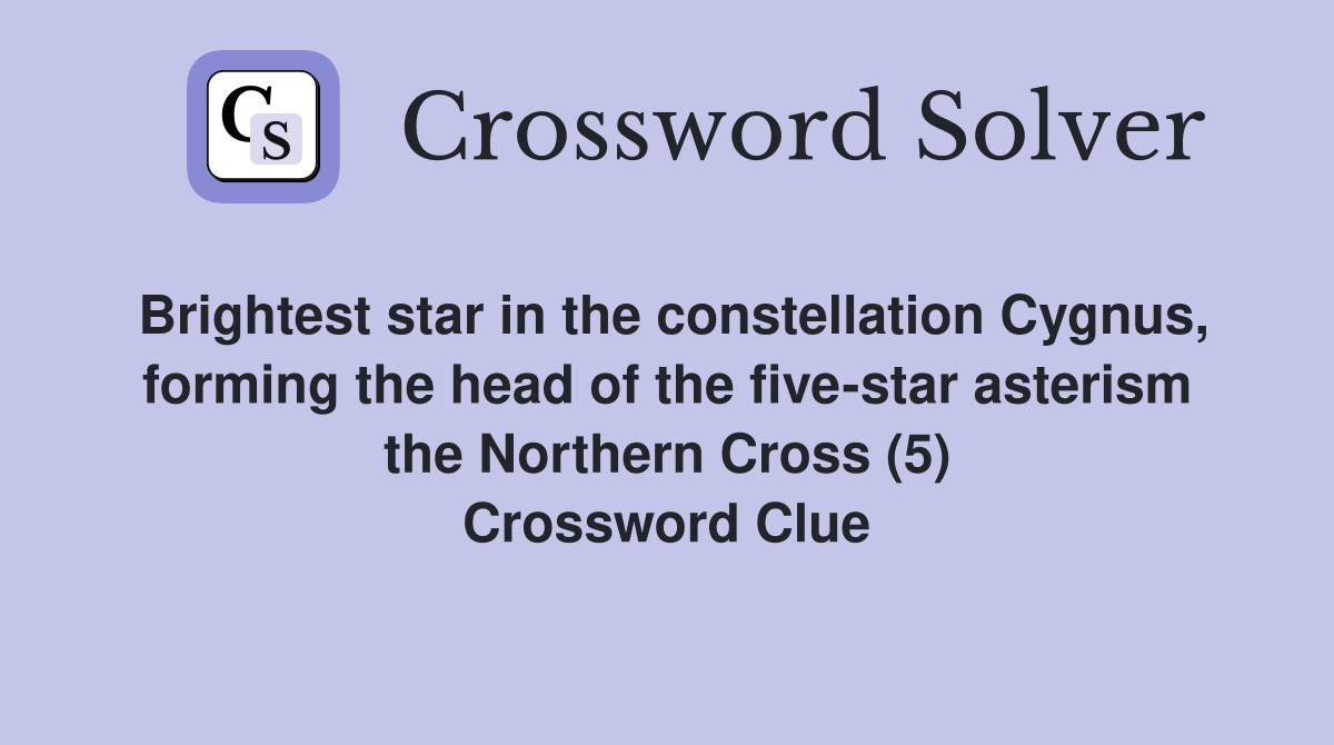 It was last seen in the independent general knowledge. The crossword solver finds answers to classic. Here are the possible solutions for brightest star in the constellation cygnus clue. Here is the answer for the crossword clue star in the constellation cygnus. Constellation cygnus is a crossword puzzle clue that we have spotted 3 times.