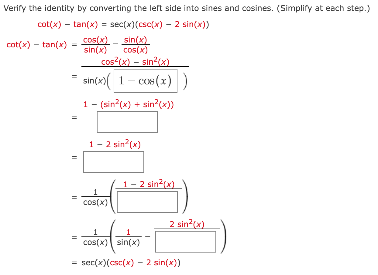 Solved Verify the identity by converting the left side into