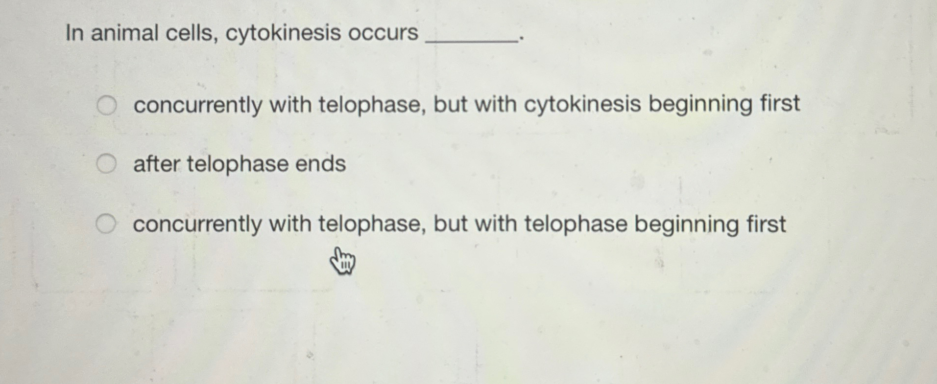 Solved In animal cells, cytokinesis occurs concurrently
