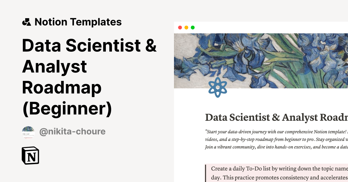 Data Scientist & Analyst Roadmap (Beginner) Template by Nikita Choure