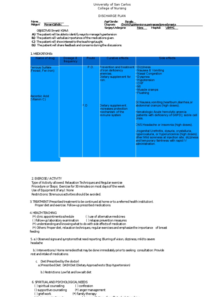 Discharge Plan PDF Adverse Effect Clinical Medicine