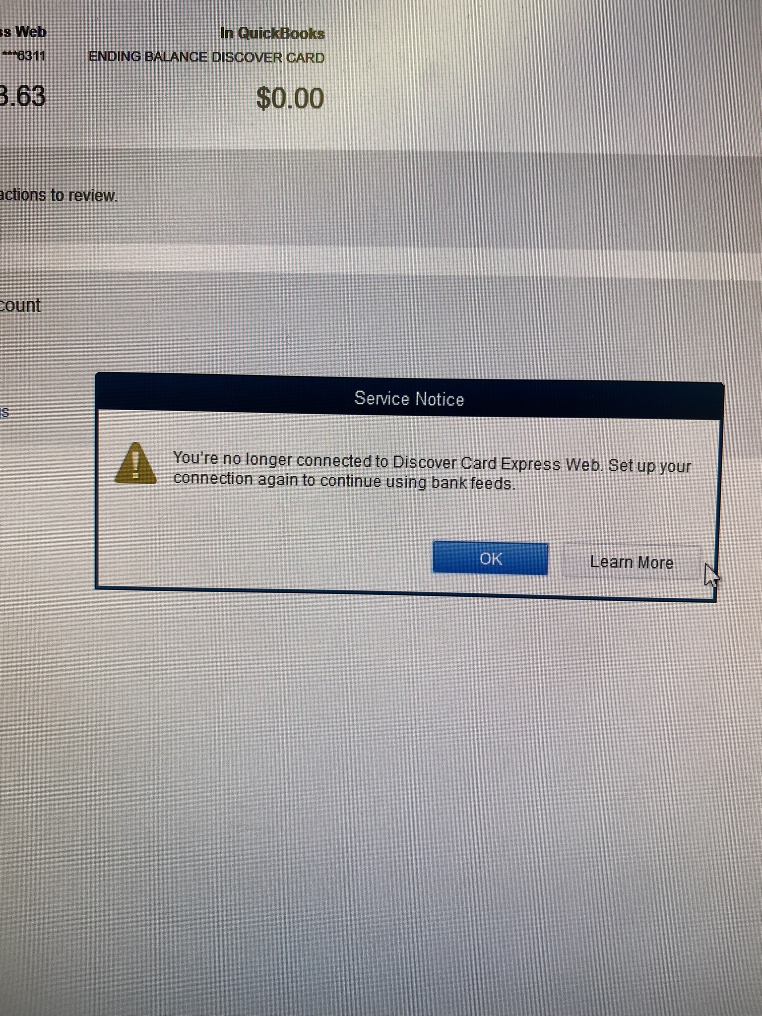 Solved Unable to disconnect bank feed from discover account QB Desktop