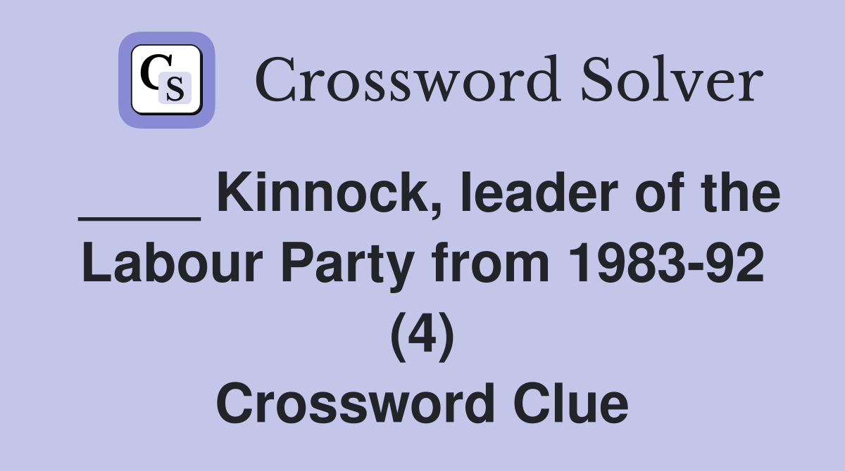 Kinnock, leader of the Labour Party from 198392 (4) Crossword Clue