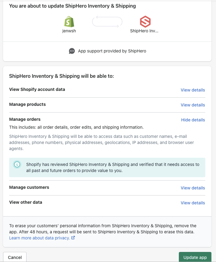Navigate to app.shiphero.com > my account > stores > settings > general settings and verify that the download products and orders that. Create a comprehensive view of your order fulfillment process by combining shopify order data with shiphero shipping status updates. We have an integration with shopify to give risk (low, high, medium) and recommended action (this could be signature_verification for. Regarding syncing inventory between shiphero and shopify, i’d highly recommend checking out this article. The download orders and download product features allow you to pull in missing orders or skus from your ecommerce store.