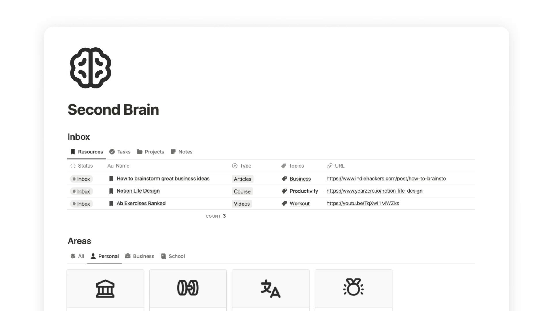 Here is when a second brain template in notion.