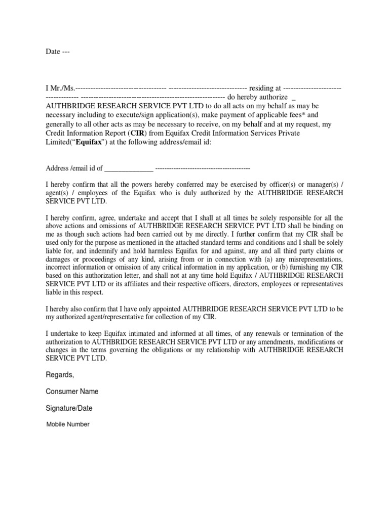 EQUIFAX CONSENT FORMCredit Check Form PDF