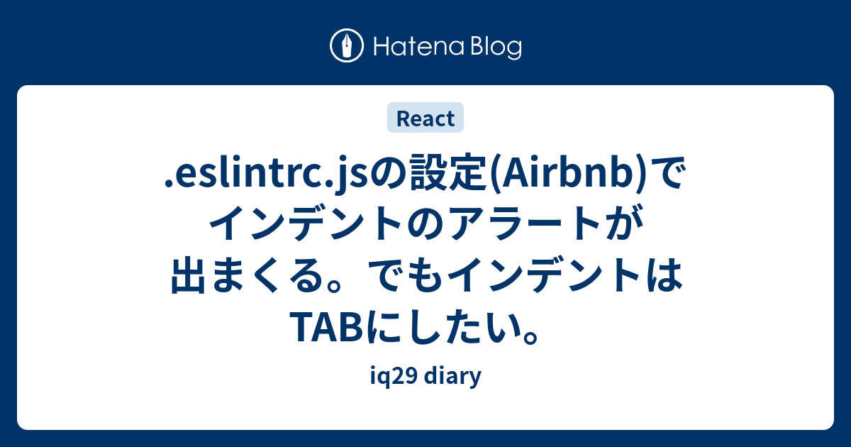 .eslintrc.jsの設定(Airbnb)でインデントのアラートが出まくる。でもインデントはTABにしたい。 iq29 diary
