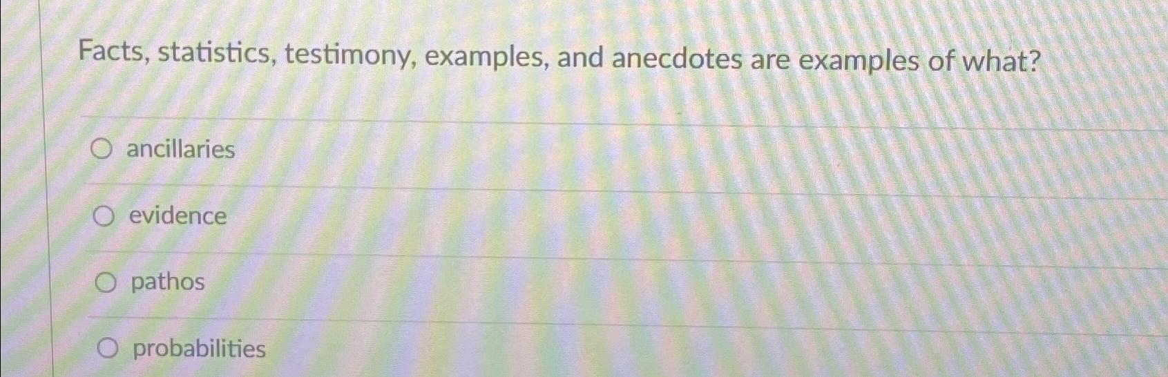 Facts Statistics Testimonies And Narratives Are All Examples Of