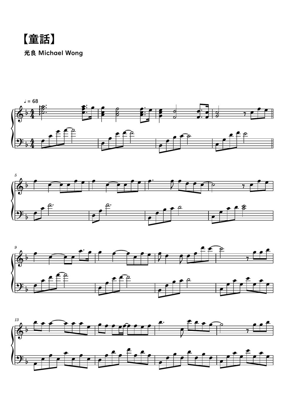 光良 (Michael Wong) 童話 Tong Hua (Fairy Tale) (Sheet Music, MIDI