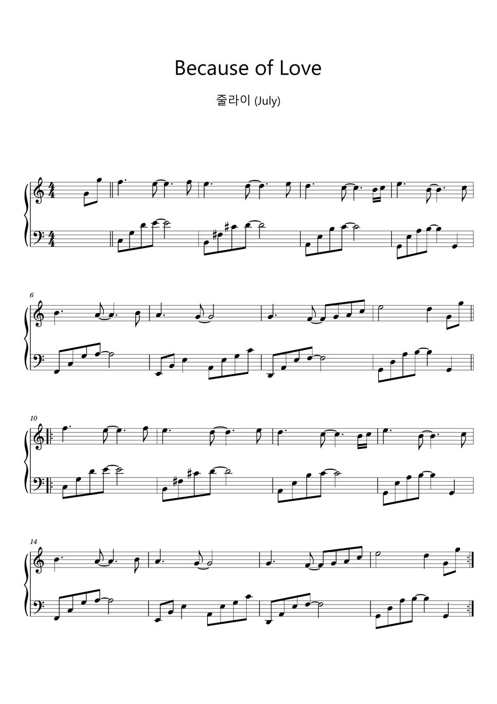 줄라이 (July) 사랑때문에 (Because of Love) (Sheet Music, MIDI,) نوتة by sayu