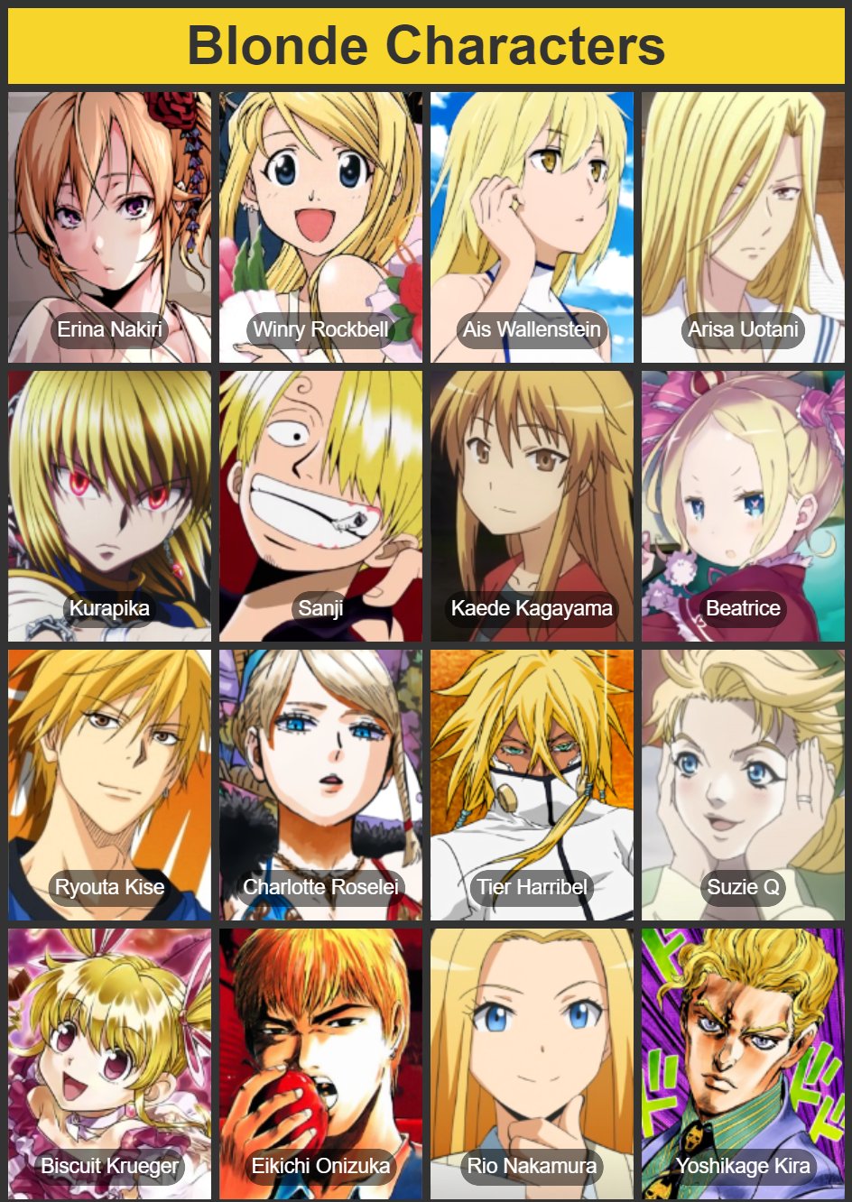 ![Anime characters with blond hair [V2] by jonatan7 on DeviantArt Anime](https://i.pinimg.com/originals/09/30/d0/0930d0a053e0c571d55b4f673bb0090b.png)