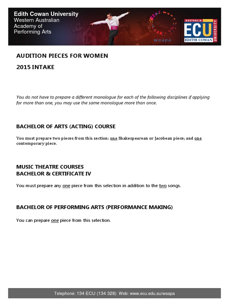 WAAPA Monologues Female 2015 Commencement PDF Thou The Two