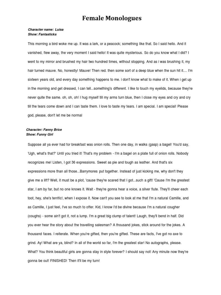 Female Monologues Pdf