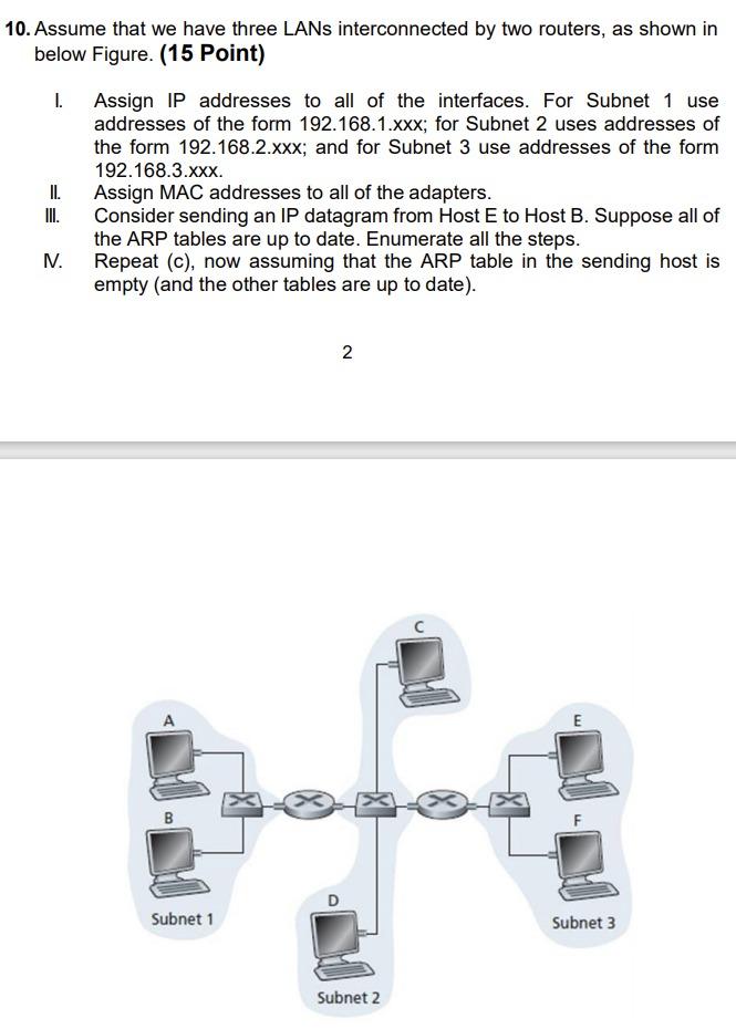 Solved 10. Assume that we have three LANs interconnected by