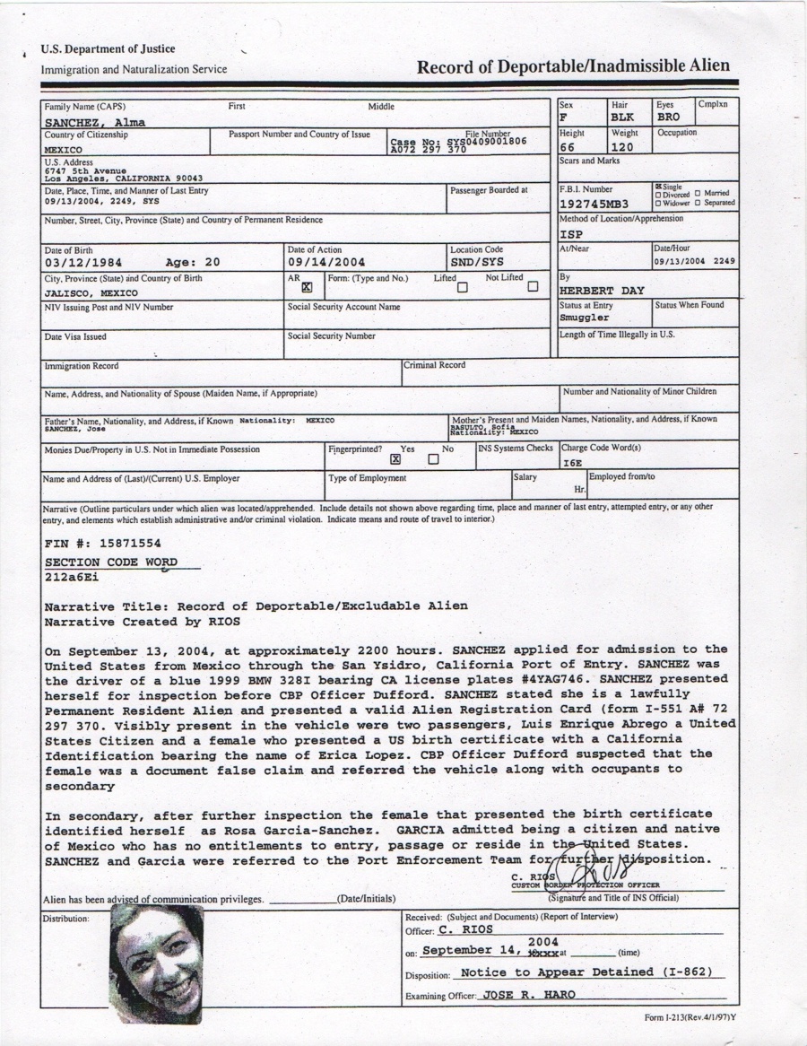 Form I 213 Record Of Deportable Inadmissible Alien - Enter your zip code to see attorneys available in your area. Customs and border protection (cbp) to.