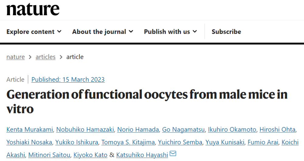 Generation of functional oocytes from male mice in vitro r/slatestarcodex