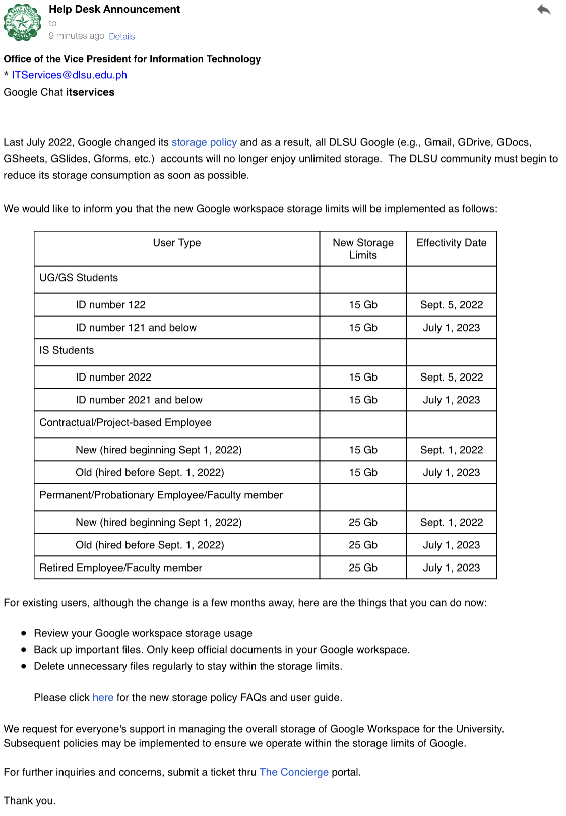 The LaSallian on Twitter "JUST IN Google Workspace storage limits