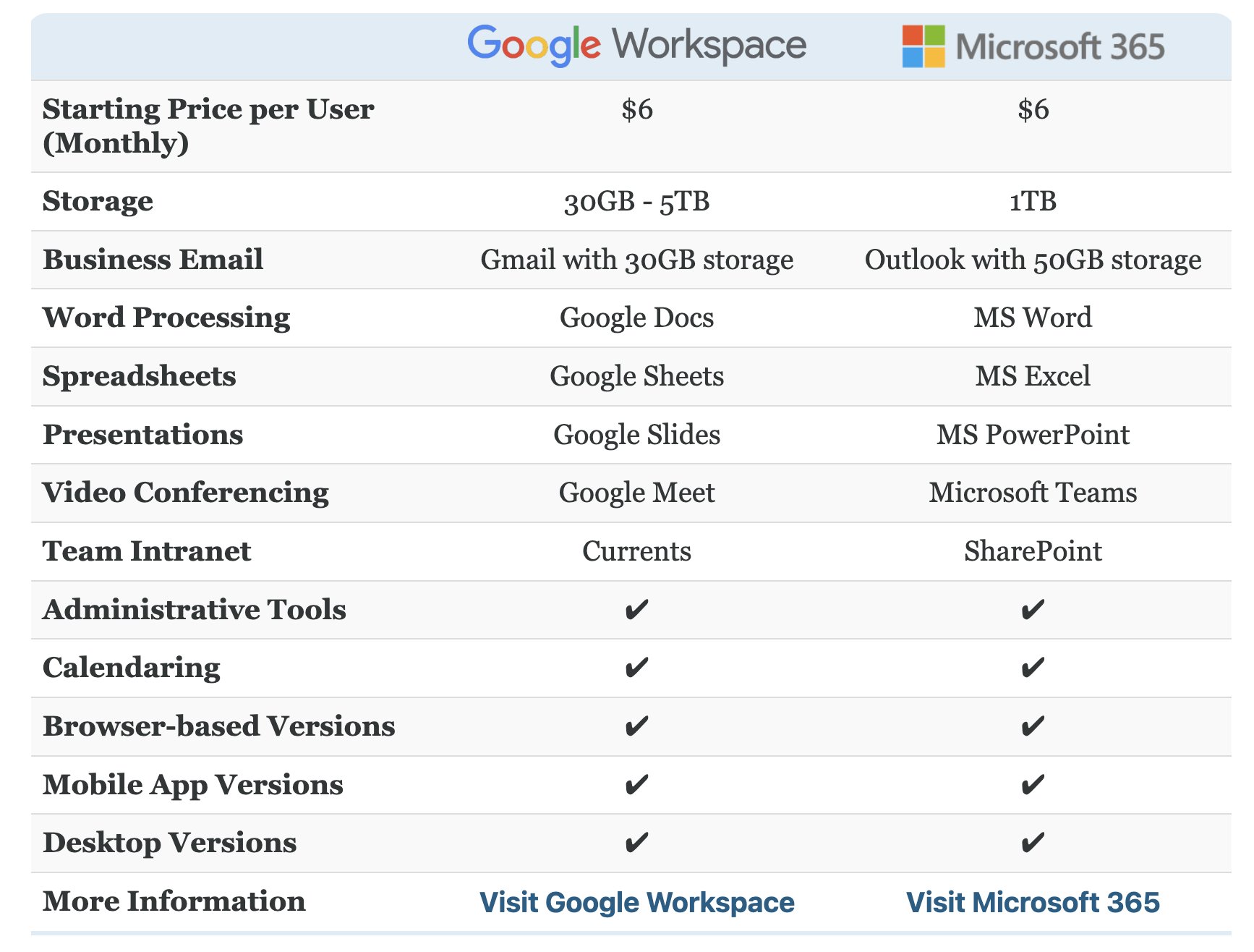 Google Workspace Vs Office 365 Comparison Chart - Check out the following tables, first for google workspace, and then for microsoft 365, to compare plans and pricing.
