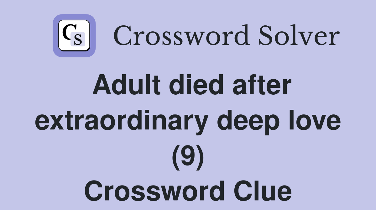 Adult died after extraordinary deep love (9) Crossword Clue Answers