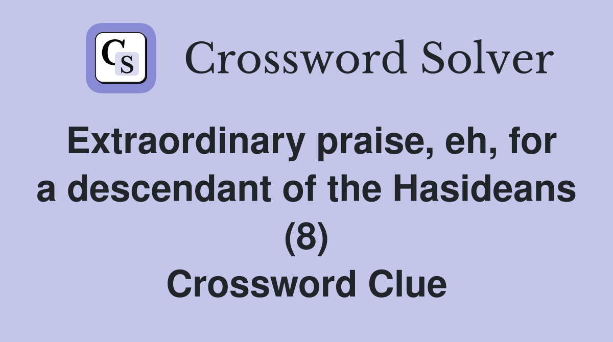 Extraordinary praise, eh, for a descendant of the Hasideans (8