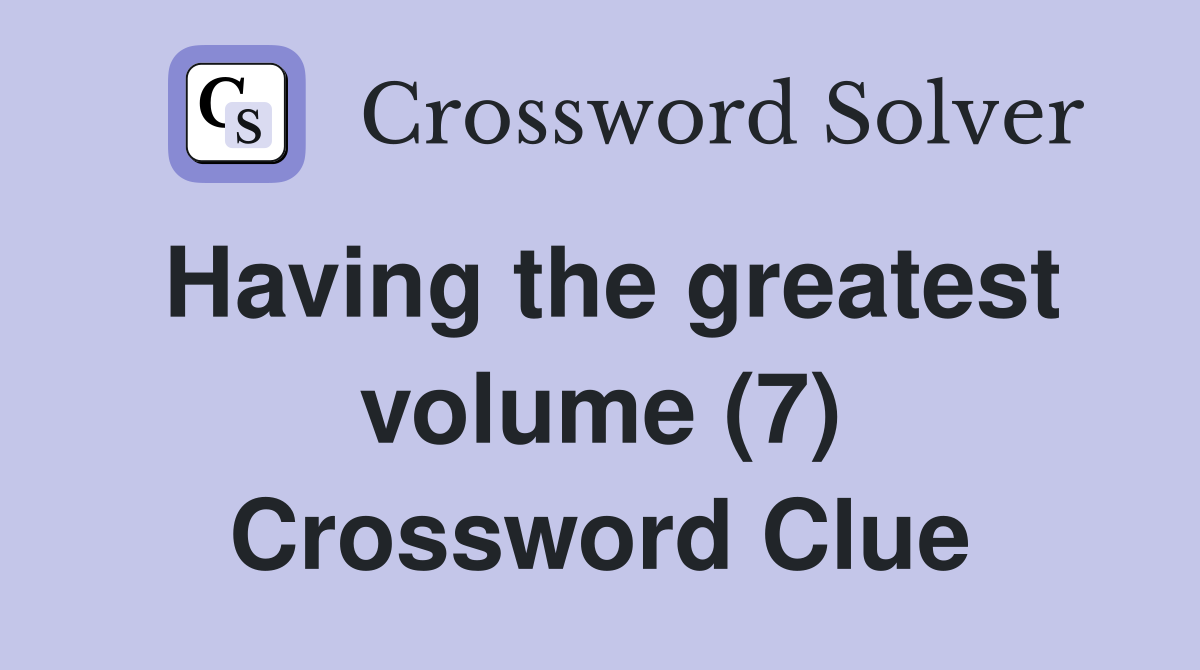Having the greatest volume (7) Crossword Clue Answers Crossword Solver