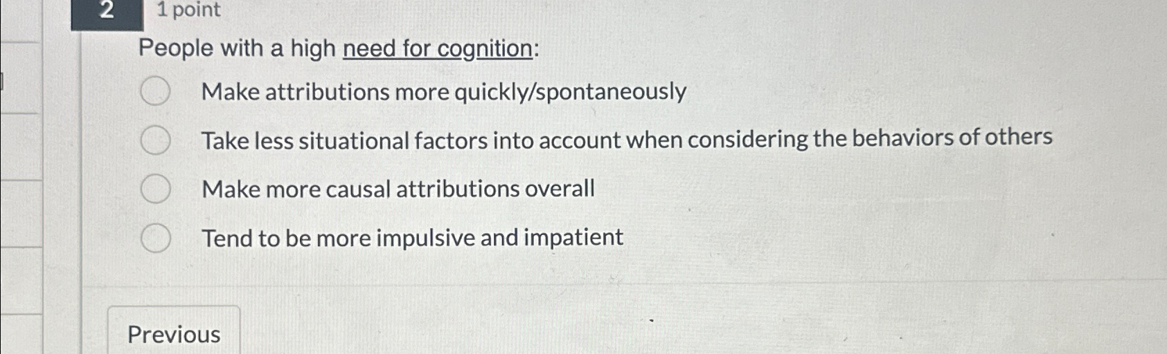 Solved 21 pointPeople with a high need for cognitionMake