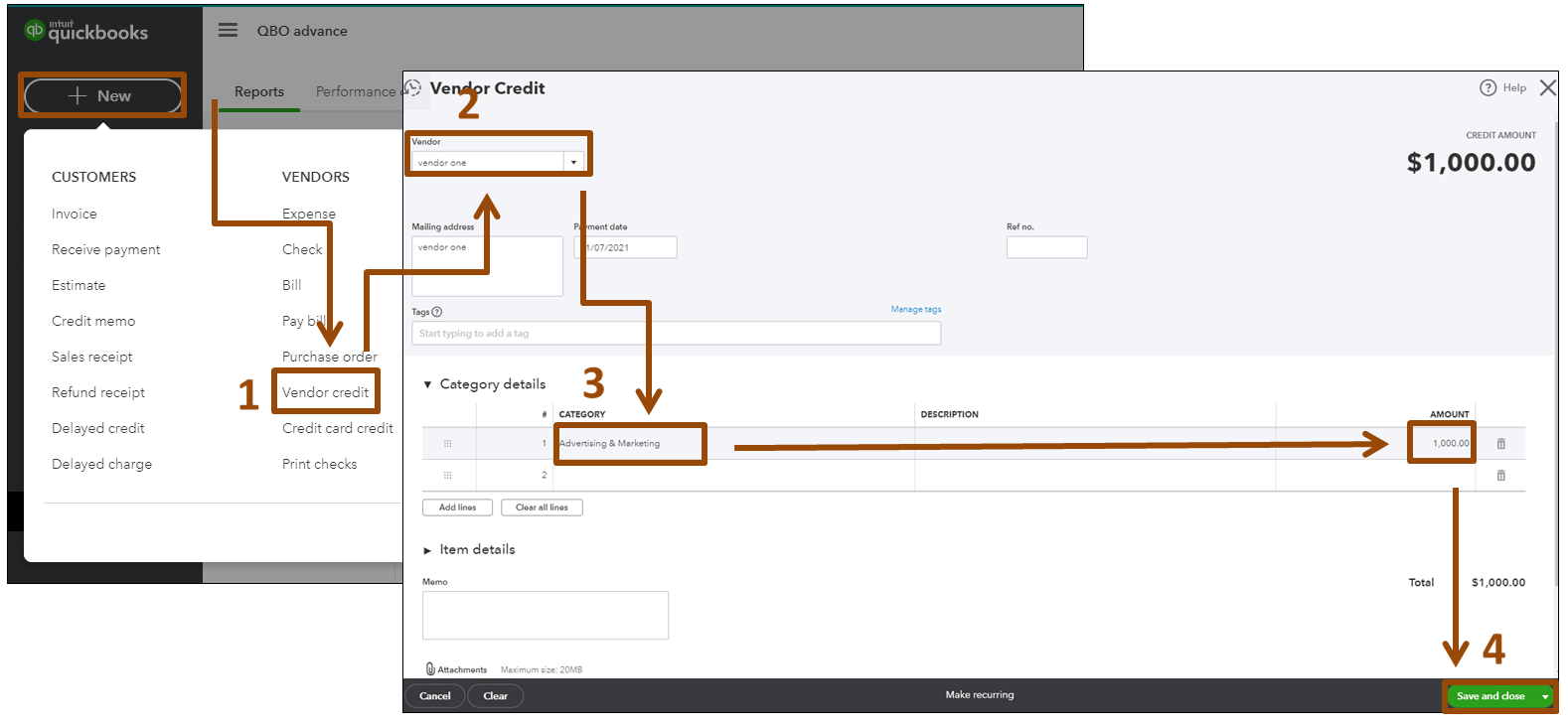Learn How To Record A Refund Or Credit From A Vendor In Quickbooks Online.