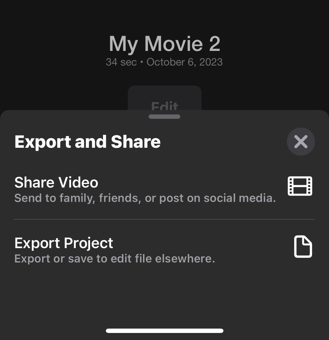 In the imovie app on your iphone, tap a project in the projects browser, tap the share button at the bottom of the screen, then tap export project.