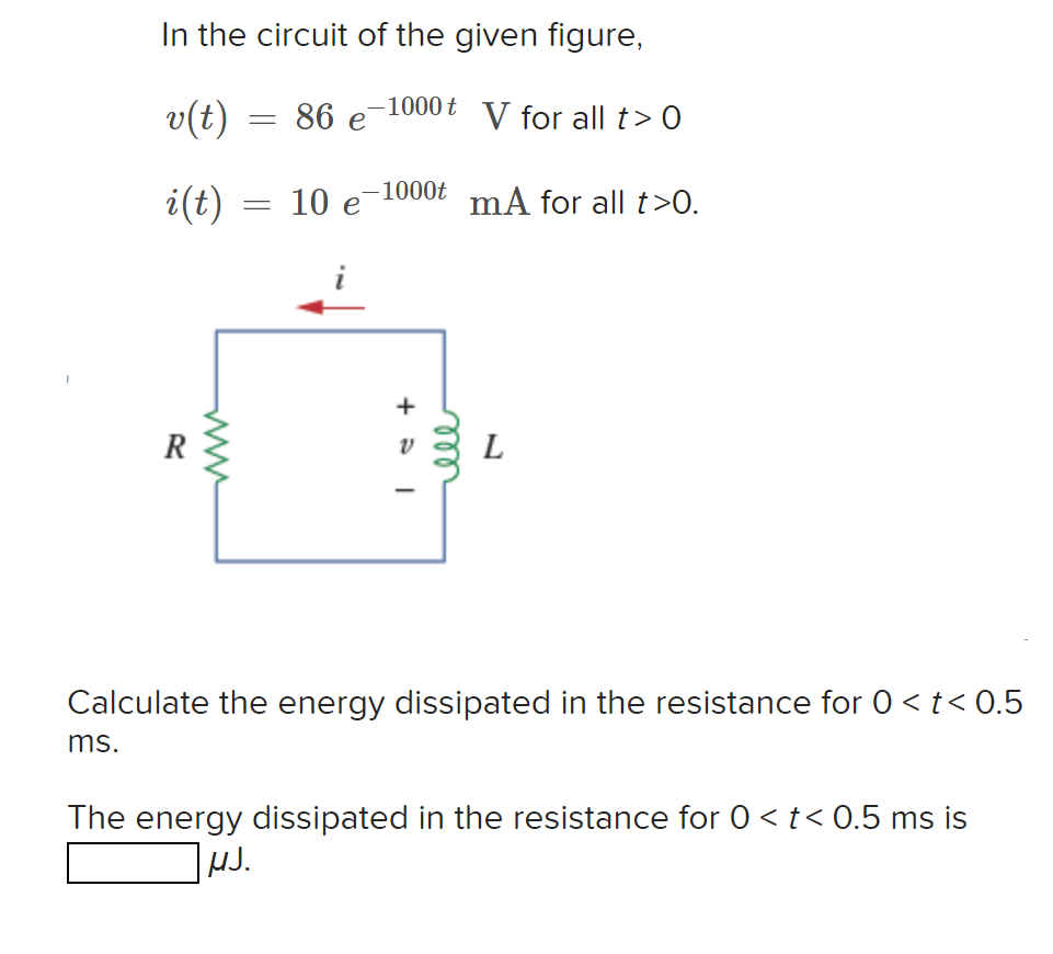 Solved In the circuit of the given figure, 1000 t v(t) = 86