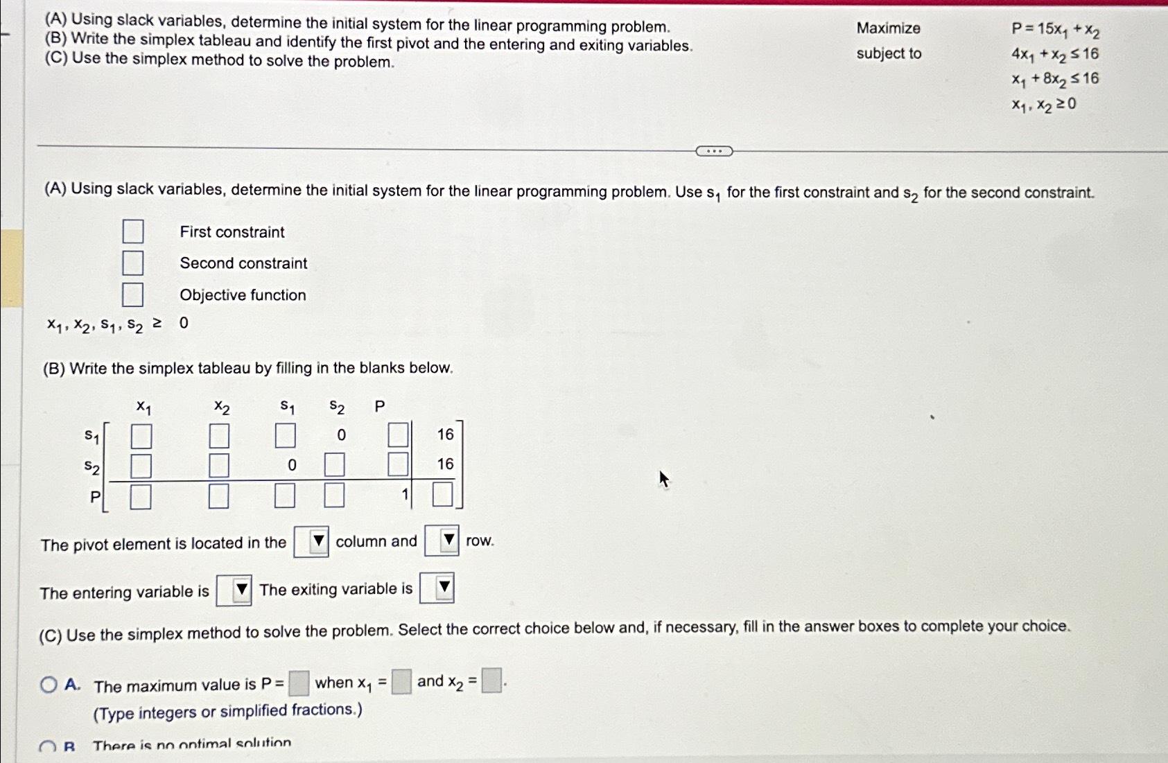The first step will be to introduce slack variables, one for each of the constraints (except the positivity constraints). In an optimization problem, a slack variable is a variable that is added to an inequality constraint to transform it into an equality constraint. In the realm of linear programming and optimization, slack variables play a crucial role. They are used.