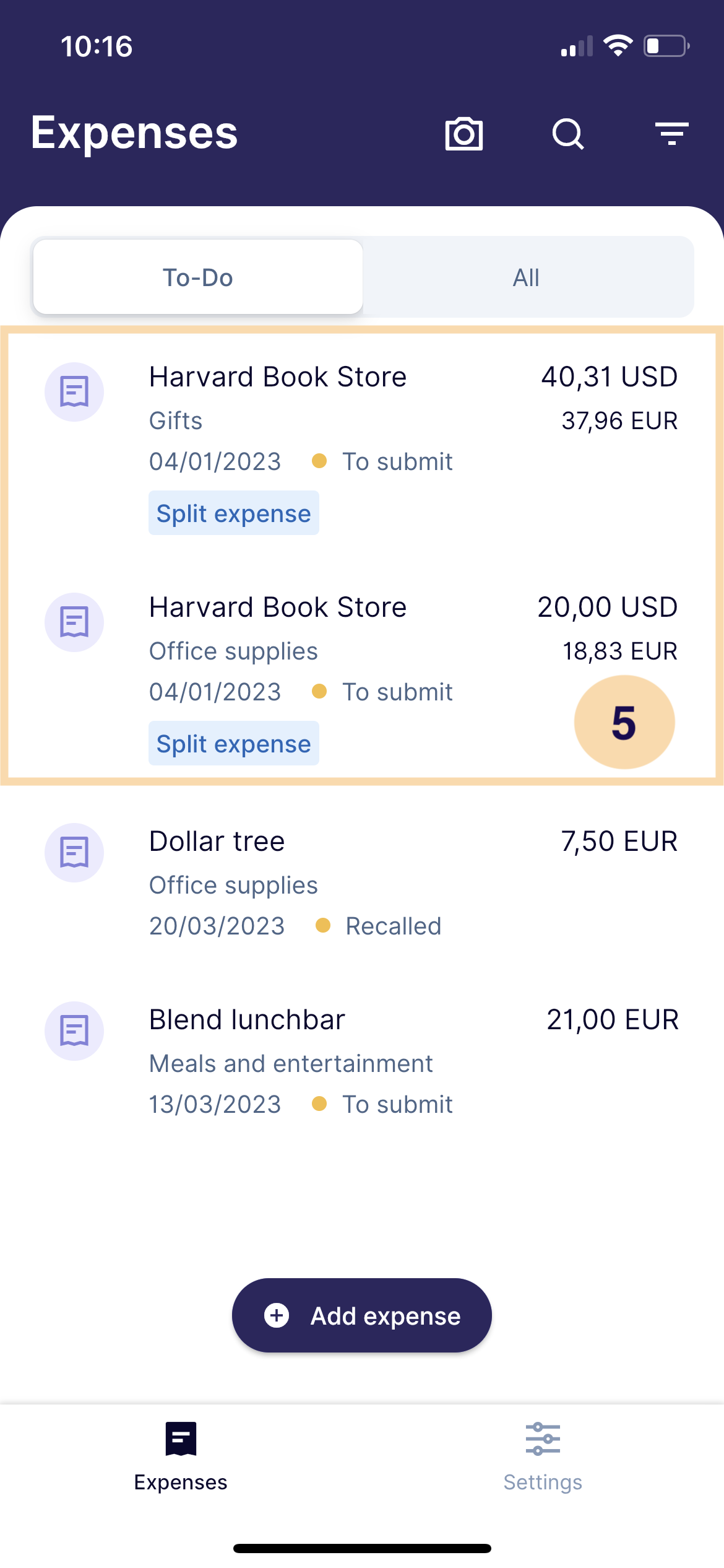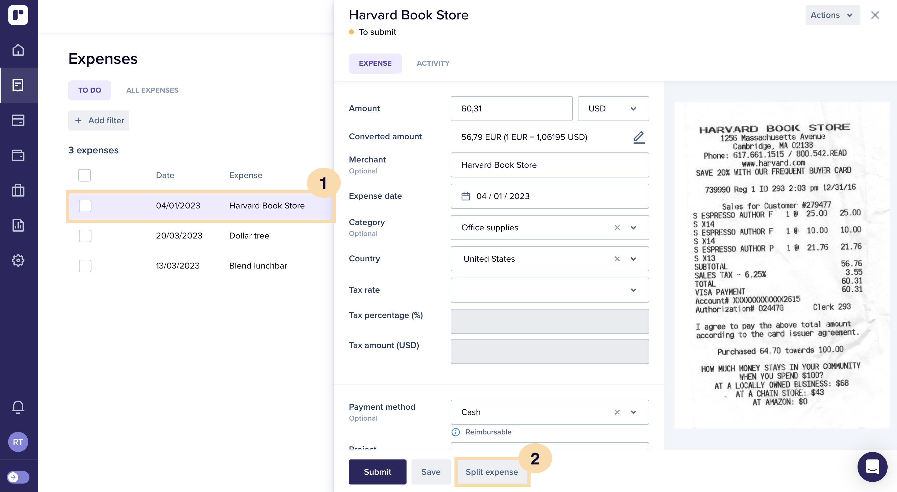 Split an expense Rydoo