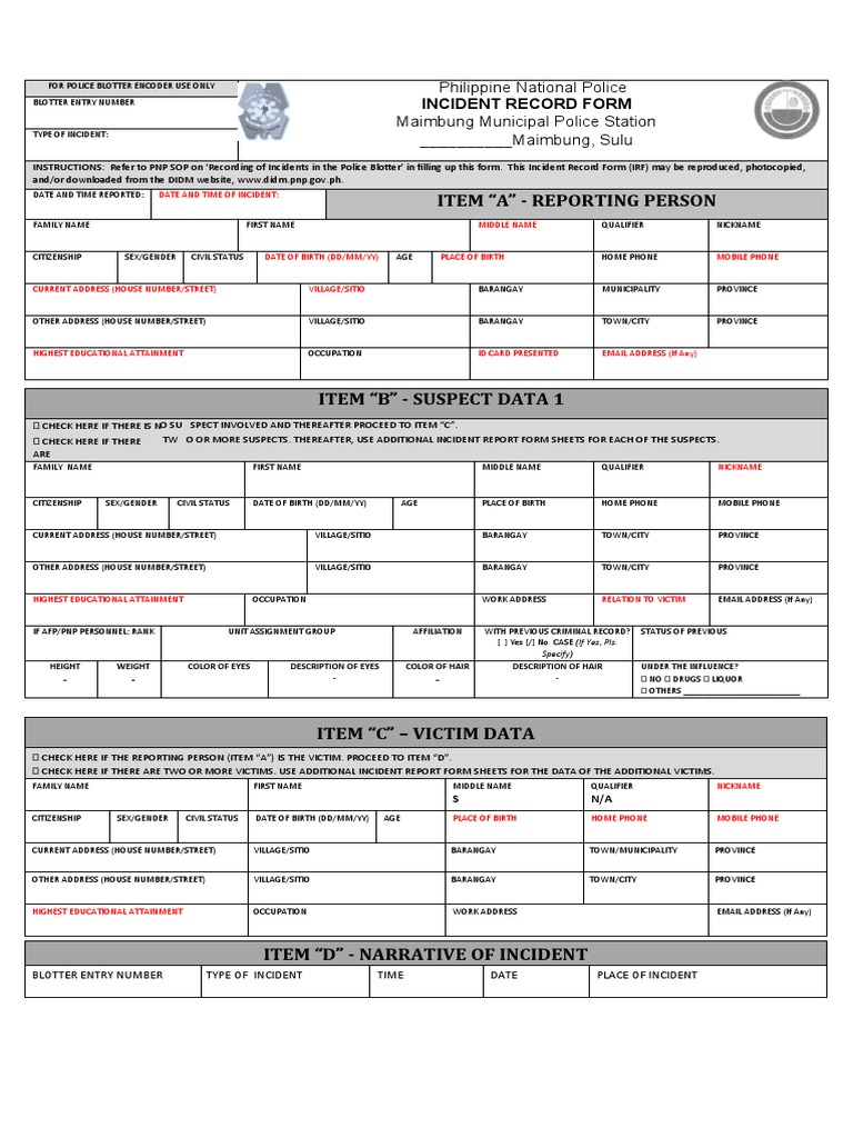 Incident Record Form.pdf Criminal Justice Crime & Violence