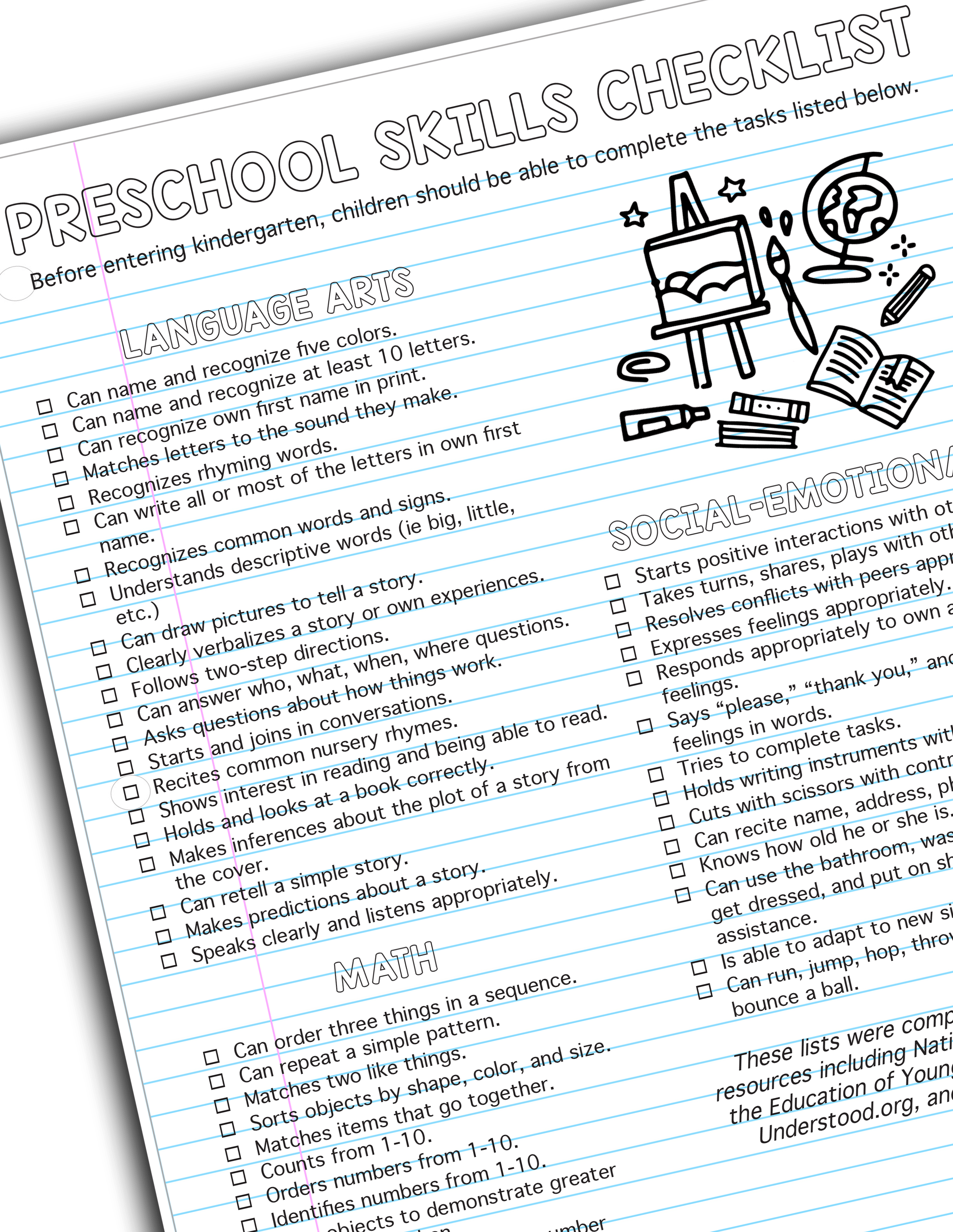 Kindergarten Readiness Assessment Checklist • Kids Activities Blog