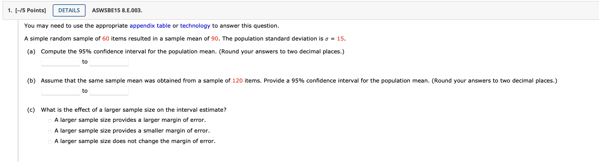 When the sample size is large we know that \(\hat{p}\) has a normal distribution by the central limit theorem. With a larger sample size there is less variation between sample statistics, or in this. This tutorial explains the relationship between sample size and the margin of error in confidence intervals, including an example. A confidence interval for a population mean is an estimate of the population mean together with an indication of reliability.